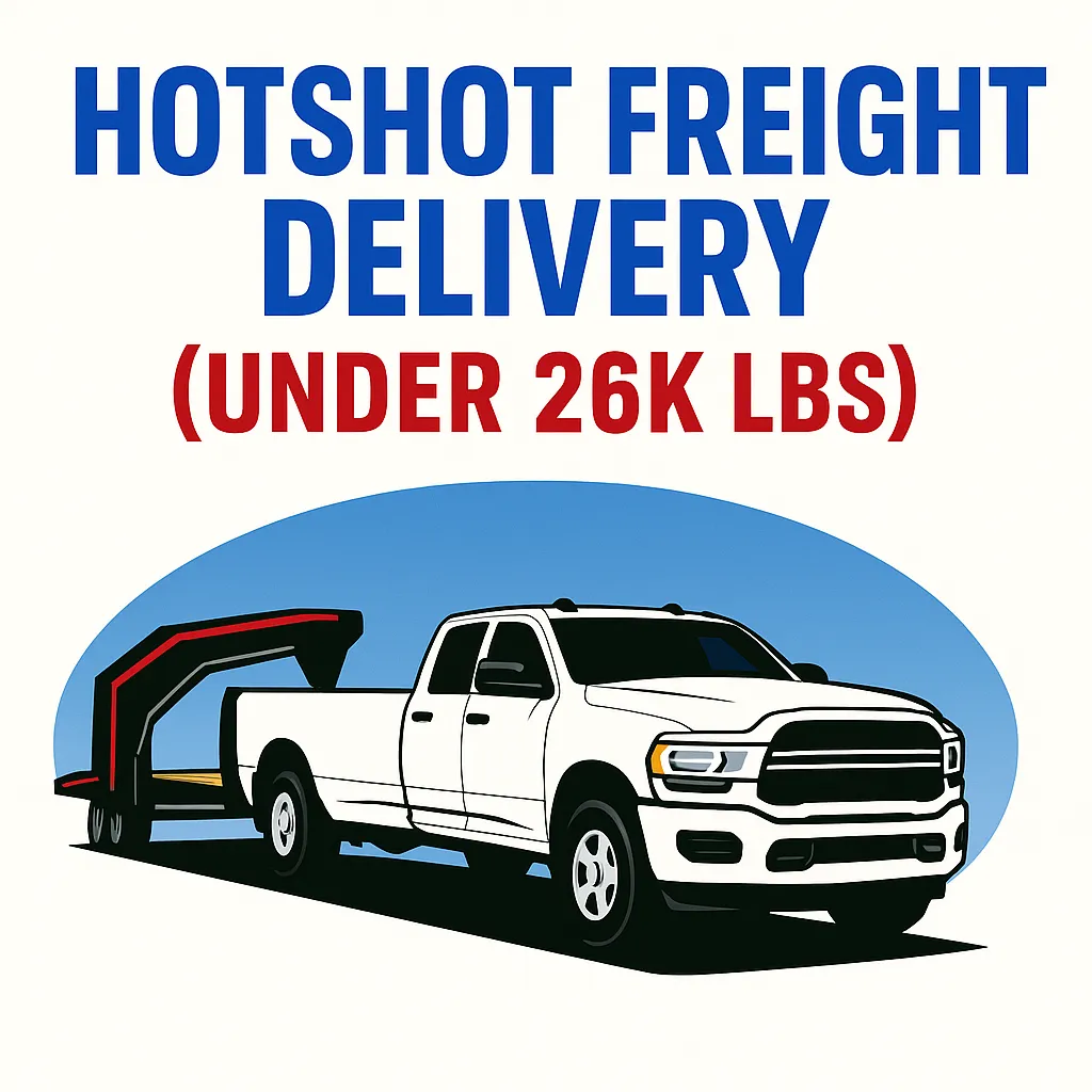 Our Hotshot setup handles general freight under 26,000 lbs GVWR (combined truck and trailer weight). This makes us perfect for lighter, flexible loads that need quicker delivery times than standard carriers.